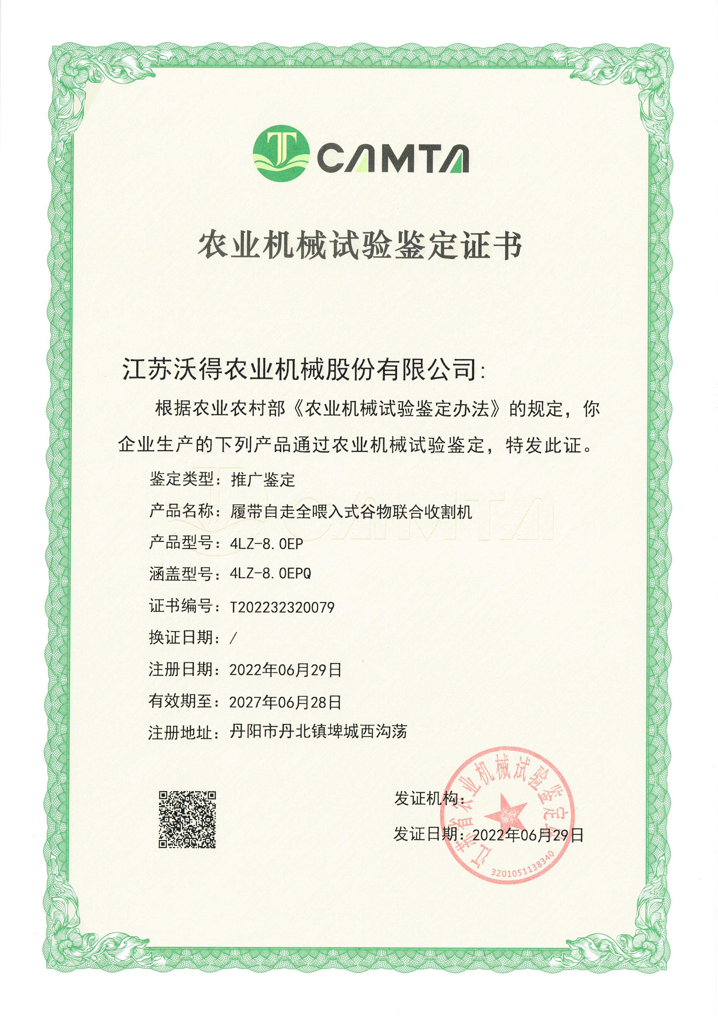 6kg/s及以上自走履带式谷物联合收割机(全喂入)